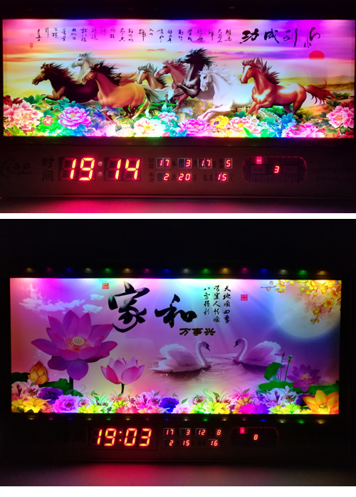 新房客廳裝飾日歷掛鐘,家和風(fēng)景萬(wàn)年歷,超薄七彩燈光更漂亮